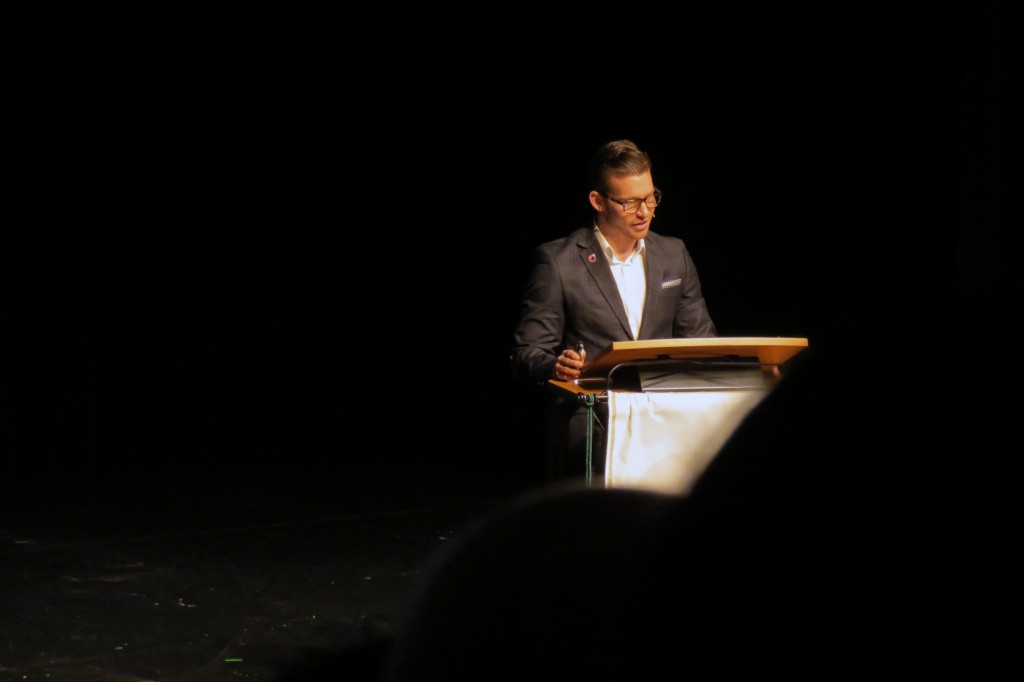 Opening with a video of a Clint Smith TED Talk about the power of speaking and the importance of using one’s voice, the crowd was immediately inspired as people shuffled to fill up every seat.