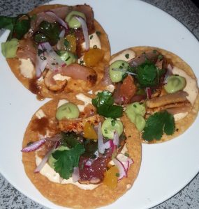 “Mix Mix doesn’t just have out-of-this-world food but drinks to match,” declared Catherine after our most recent visit to Mix Mix to sample the Happy Hour menu and cocktails. “I’m not usually a whiskey drinker but the way their cocktails were mixed I may have changed my mind. The Hillbilly was one of my favorites with barrel hitch Oregon oak whiskey, elderflower liqueur, coach American, cardamom-orange bitters and star anise. The combination of bold flavors actually blended together to make a light and slightly sweet drink. But my favorite drink here is the Silly Rabbit, a spicy tequila based drink that is a must-try. And kudos to mixologist Joe Carlin, he’s so much fun to watch and talk to while he makes these drinks.”