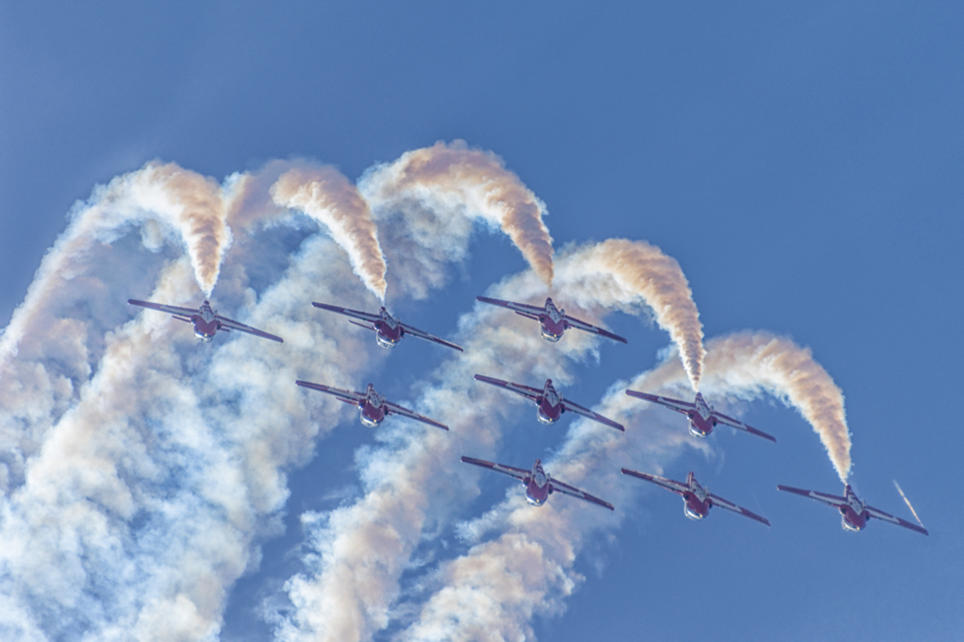 The Canadian Forces Snowbirds team flies in formation during the airshow in Huntington Beach over the weekend.