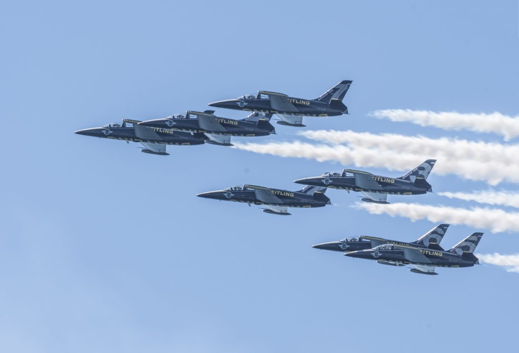 The Breitling Huntington Beach Air Show had it all when the event came to Newport’s neighboring coastal town over the weekend of Oct. 21-23. Led by the Breitling Jet team, the skies over were filled with spectacular performers. A sky diver with an American flag landed safely on the beach. Stunt planes, including the Sasquatch – which also boasted a jet engine, performed their magic. Orange County sheriff’s rescue helicopter plucked a “victim” out of the water. The Breitling Jet Team, the only private jet performers, raced across the sky and dazzled hundreds of thousands of beach goers with their acrobatics. An F18 super hornet allowed all to feel, hear and see a jet flying at 600 miles per hour. The star of the show was the United States Air Force Thunderbird team. Their precision flying maneuvers awed all and sent a wave of patriotism through the crowd.