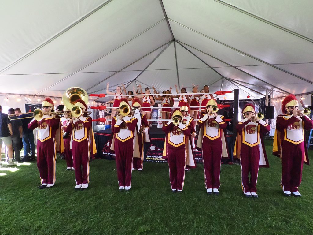 The USC band performed during the Super Bowl event. Photo by Lawrence Sherwin.