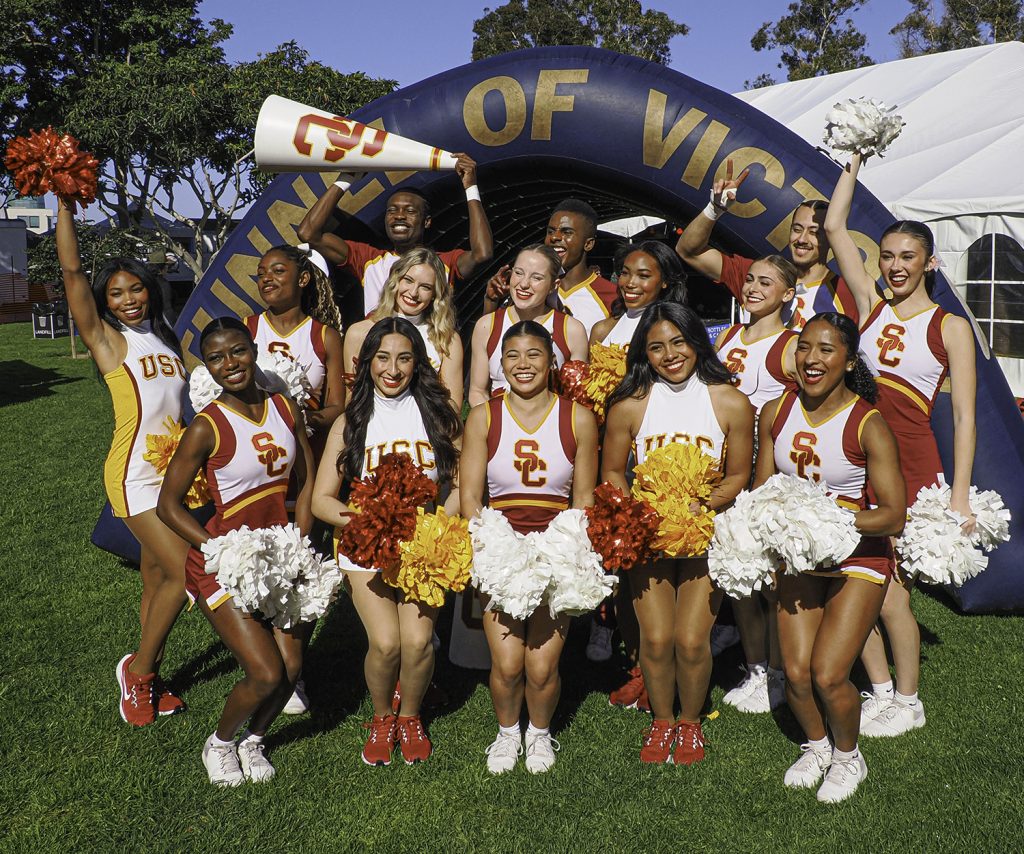 USC Spirit Leaders at the Super Bowl event. Photo by Lawrence Sherwin.