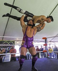 Wrestlers at the Super Bowl event. Photo by Lawrence Sherwin.