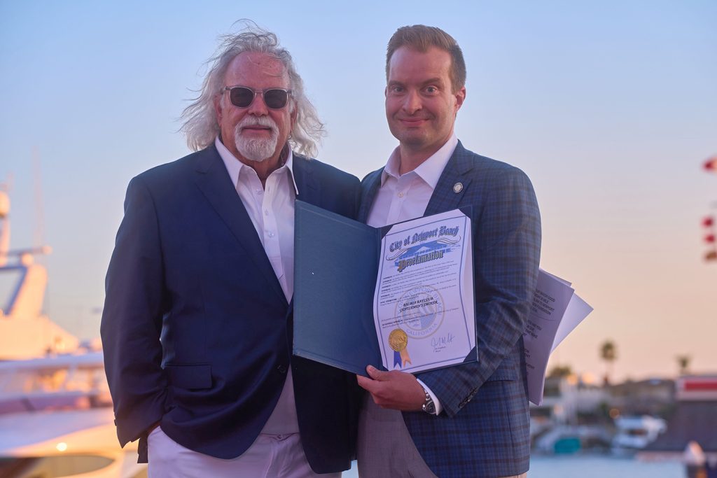 Unfolding on the Club’s beachfront lawn, Newport Beach Mayor Joe Stapleton welcomed a crowd of more than 250 men to the event. At his side were event co-chairs John Wortmann and Kory Kramer, who reminded attendees that the purpose of the event was to raise significant funding for the annual Balboa Bay Club’s 1221 College Scholarship Fund.