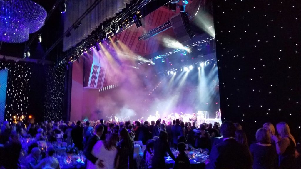 Chicago also played an important part in the dinner. Once the curtain to the Segerstrom Center stage was raised, a glittering Chicago skyline and related décor came into view.