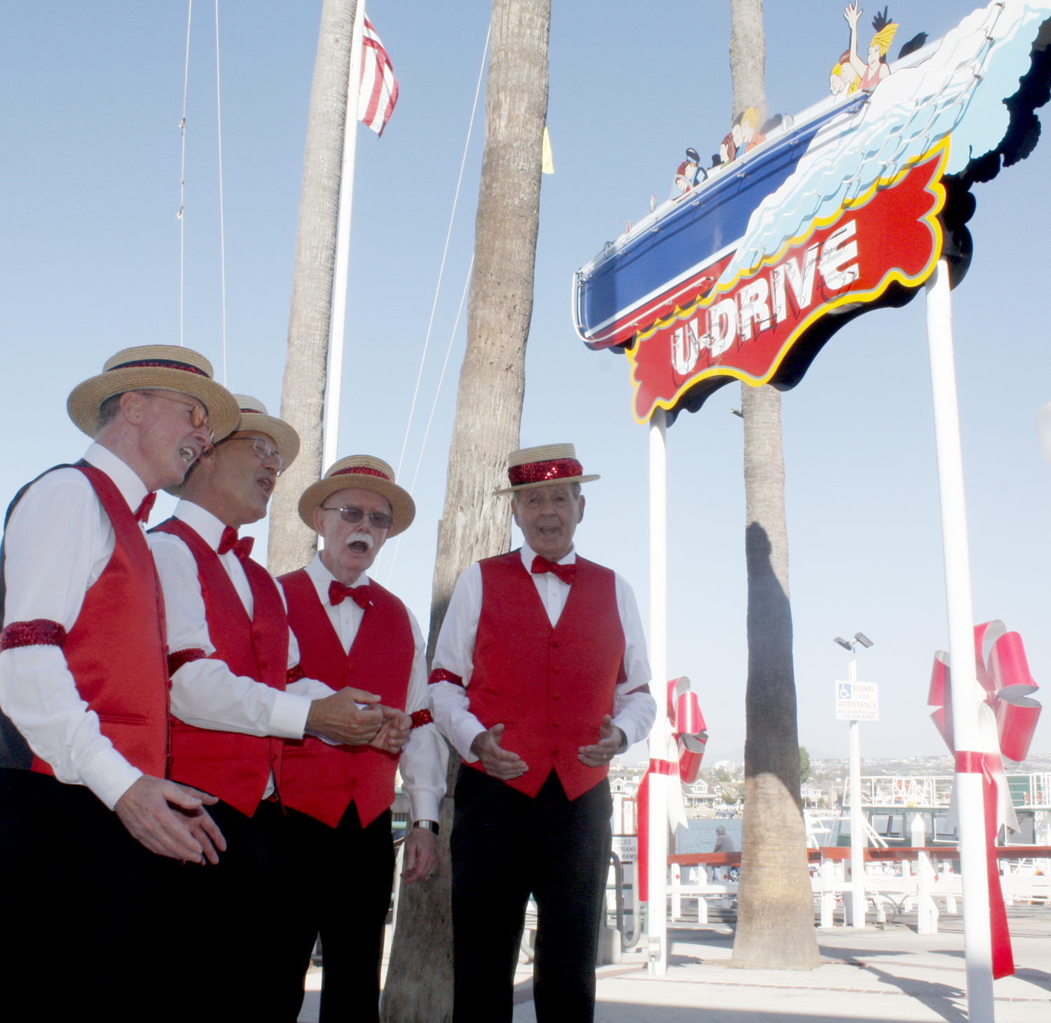 A ribbon cutting ceremony complete with a barbershop quartet was held this week to commemorate the refurbishment of the “U-Drive” sign.