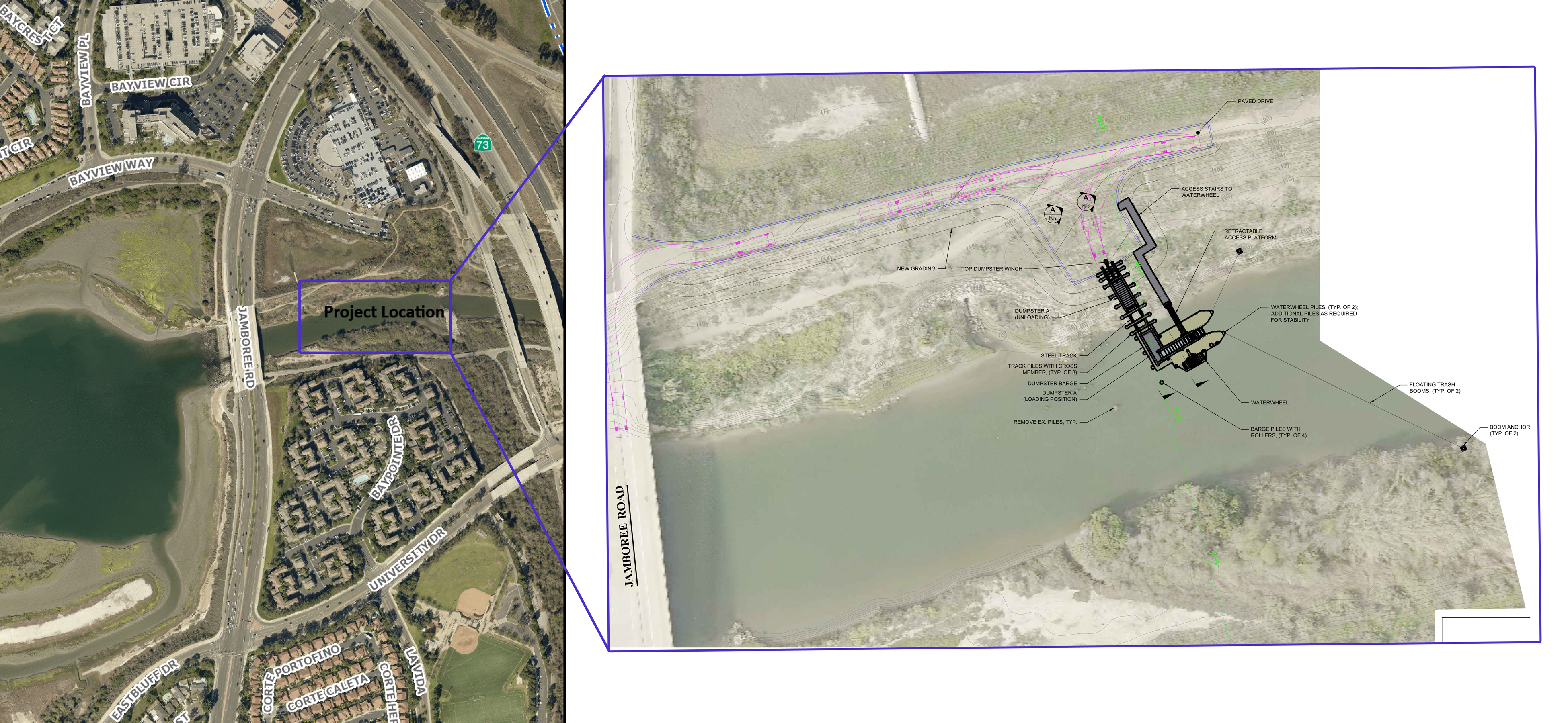 It would be placed approximately on the east side of the Jamboree Road bridge in the San Diego Creek, which is the entry point for much of the debris coming into the bay.