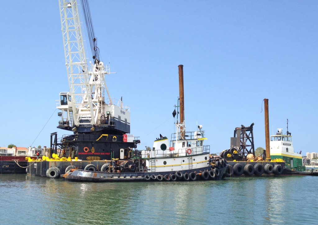 Beginning last December, and projected to be contractually completed around September 26, of this year, the dredging operators, sinking a 24-cubic-yard bucket, will remove 900 thousand cubic yards of “legacy” material that has settled on the harbor bottom, most deposited when the Santa Ana River emptied into the bay at what is now the turning basin, and where deep-draft commercial vessels used to deliver materials and supplies to the area as late as the 1930s.