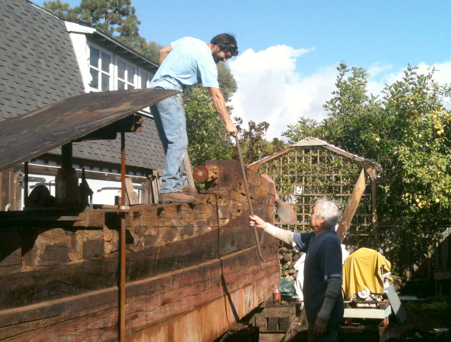 Led by his son, Dennis Holland Jr. – an experienced boat builder in his own right – a crew of young and old family and friends began the massive undertaking on December 23.