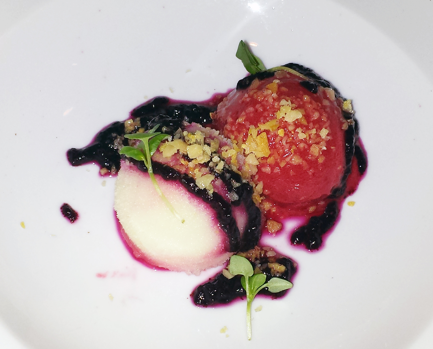 The desserts were pure perfection: Roxie (tiramisu with Savoiardi biscuits, mascarpone mousse, espresso, and cocoa nib truffle) and Razzle Dazzle (raspberry and lemon sorbet, pop rocks, blueberry thyme coulis, and a sable cookie).