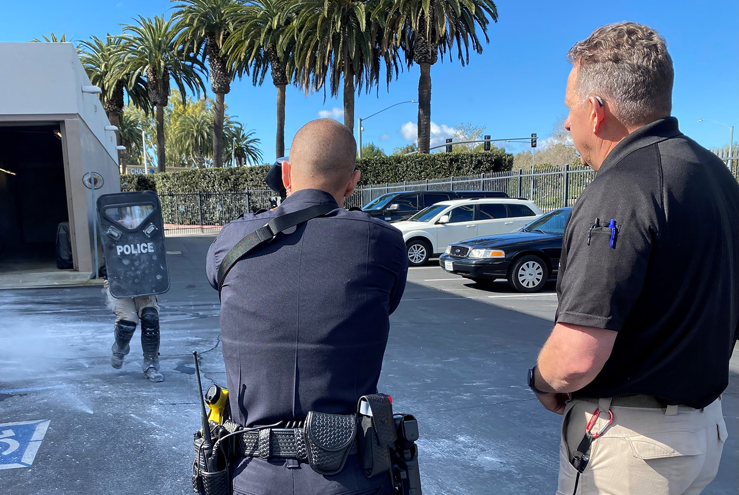 In Newport, that could include confrontations in foggy conditions; or low- light encounters, plus equipment malfunction in any number of potential situations. Kyzer studies real life police action reports from around the nation to make sure he covers the training bases.