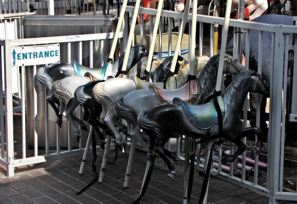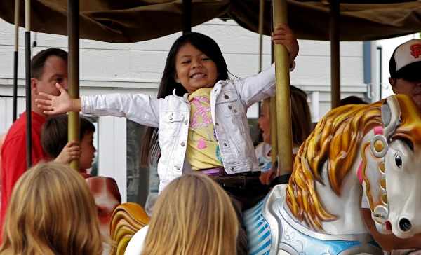 A youngster enjoys the carousel at the Balboa Fun Zone last weekend, when the attraction celebrated its 75th anniversary with a return to 1930s prices. It was also a ride into the sunset for the attraction, which will be replaced by an expanded ExplorOcean/Newport Harbor Nautical Museum complex. Below are more photos from the day.