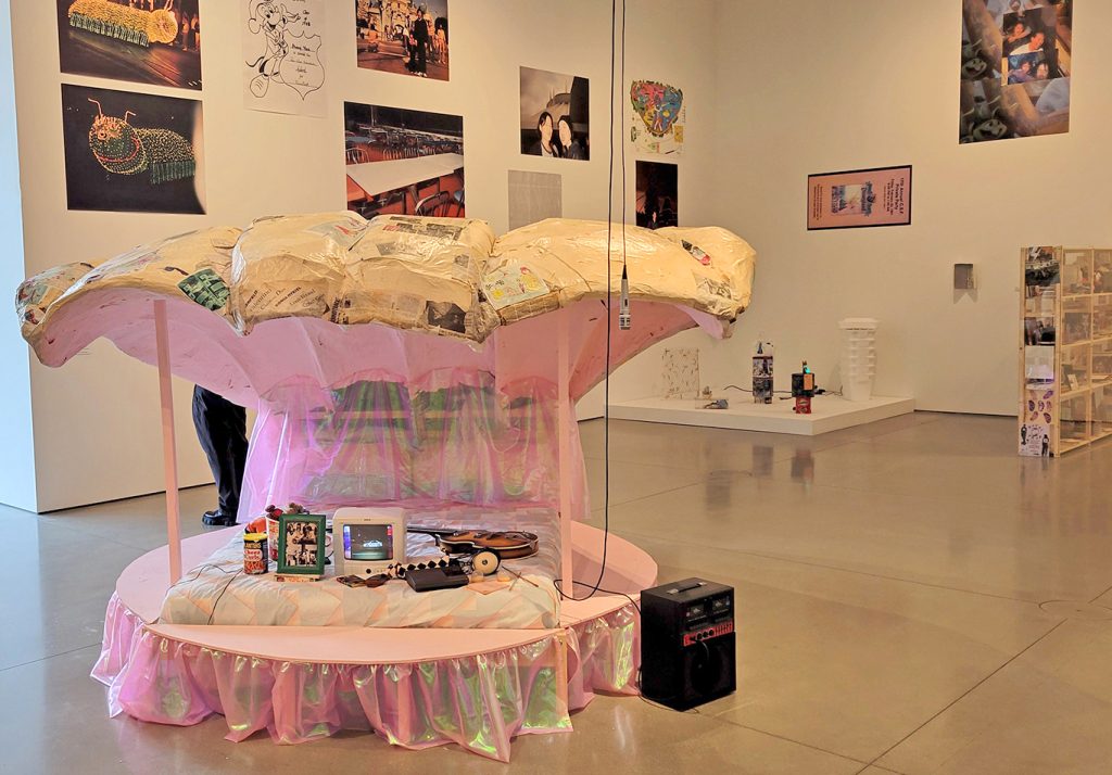 Amy Yao describes the displays: “I would say there’s a bit of randomness and maybe some meaning. And then there’s a lot of things that are meaningful to me, but maybe there are no keys or clues to why they’re meaningful, like scraps of paper with random numbers.”