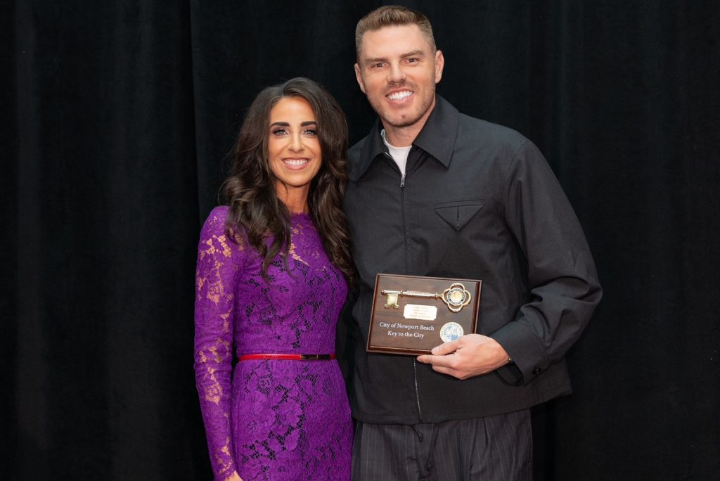 “He truly etched his name into history. He’s delivered unforgettable moments on the diamond and captured the hearts of fans. He can live anywhere, but chooses to raise his beautiful family in Newport Beach. It is with my great pleasure that I present this key to the city to Freddie Freeman.”