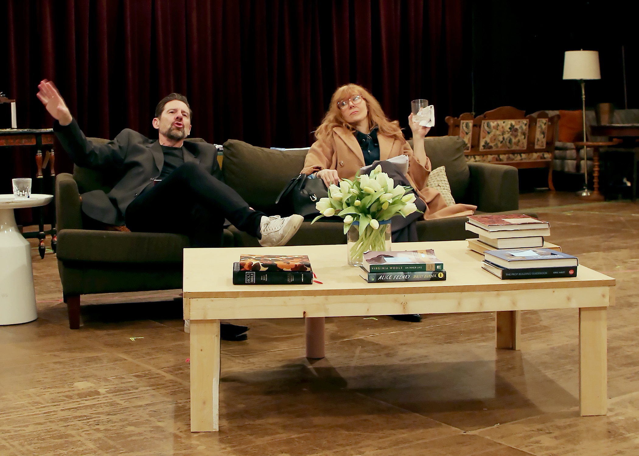 Brian Vaughn and Kim Martin-Cotten in rehearsal for South Coast Repertory’s 2026 production of “God of Carnage” by Yasmina Reza, directed by Marco Barricelli. Photo by Jon White/SCR.