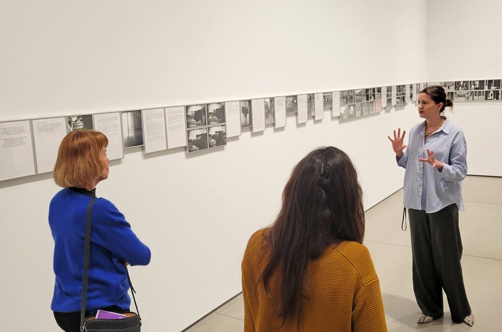Henriette Huldisch (far right), Chief Curator and Director of Curatorial Affairs at Walker Art Center, during a guided media tour of the exhibit. Photo by Chris Trela.